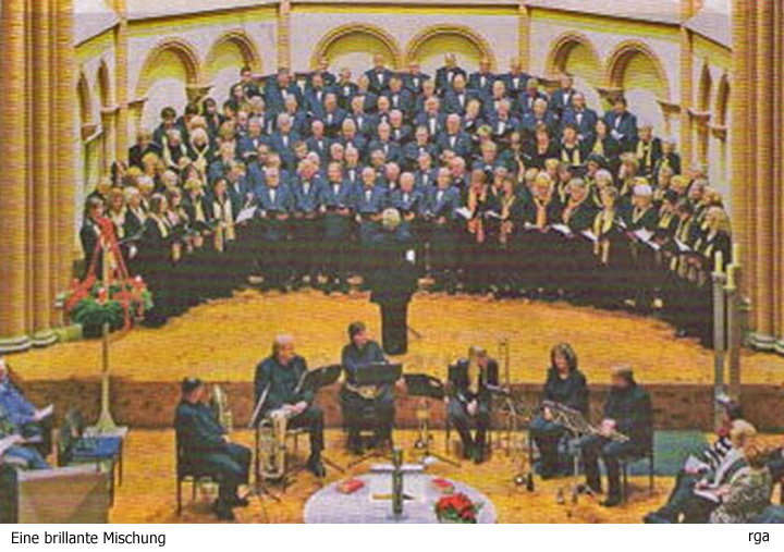 bm Arikel vom 20.12_2010 Ein musikalisches Adventsgeschenk REMSCHEID (MM) Einen stimmungsvollen Adventsabend verschafften der Frauenchor Remscheid und des Remscheider Männerchor Germania ihrem Publikum, Zusammen mit der Bläsergruppe Lüttringhausen, dem „Kleinen Chor der Germania und Dieter Leibold an der Orgel wurde das Konzert in der Kirche St Josef zu einem echten Ereignis. Die Besucher hörten bekannte und weniger bekannte Advents-und Wemttaehtslieder, gesungen und gespielt. Nicht nur die beiden großen Chöre waren optimal aufeinander abgestimmt, die gesamte Zusammenstellung war ein wahrer Genuss. Schon die Lieder, die von beiden Chören gemeinsam gesungen wurden, ließen eine Gänsehaut des Wohlgefallens entstehen. Das musikalische Zwichenspiel von Dieter Leibotd an der Orgel verband die einzelnen Stücken sehr gelungen. Lieder mit Lokalkolorit Die Ensembles unter der Leitung von Claidia Rübben-Laux, Jürgen Kohlgrüber und Hans Herbert Brüninghaus vermittelten den Besuchern einen bunten Mix besinnlicher und fröhlicher Lieder. Gelobt sei der da kommt" war das Motto des fast zweistündigen Konzerts. das nach der Meinung der Zuhörer viel zu schnell vorüber war. Der erste Teil wurde nach der musikalischen Begrüßung durch die Bläsergruppe Liittringhausen und den gemeinsamen Einstieg der Chöre vom Frauenchor dominiert In diesem Programmteil fanden sich auch Lieder, die vom „Kleinen Chor" des Frauen- und Männerchores beigetragen wurden. Darunter waren Goppels und das Lied mit Lokalkolorit "Weihnachten im Bergischen Land". Im zweiten Teil des Konzerts, das ohne Pause auskam, war stärker der MSnnerchor Gernisnia zu hören. Auch hier waren die Beiträge der hervorragenden Bläser perfekt in die Abfolge eingewogen. Es waren zum Teil die Kontraste im Wesen der Lieder, die Gharaktere der Stücke und die perfekte Darbietung, die den Reiz des Konzerts ausmachten. Hielt sich das Publikum mit dem Applaus zunächst zurück, so wurden die flotten Gospel und Soli von Claudia Rübben-Laux von den begeisterten Zuhörern mit Beifall quittiert. Eine brillante Mischung WEIHNACHTSKONZERT In der Lutherkirche sangen und spielten der Frauenchor Remscheid, der Männerchor „Germania" und die Bläsergruppe Lüttringhausen. ![]() Von Elisabeth Erbe Man folge dem leuchtenden Stern, der oben am Kirchenhimmel hell erscheint und gelangt direkt in das festliche Weihnachtskonzert in der evangelischen Lutherkirche. Am Freitagabend schmückte der Frauenchor Remscheid zusammen mit dem Remscheider Männerchor „Germania" und der Bläsergruppe Lüttringhausen das Gotteshaus mit himmlischen Klängen. Der Weg zur Krippe, wurde bei der Begrüßung deutlich, birgt viele Anstrengungen, die vergleichbar sind mit unserer heutigen Zeit. „Dieses Konzert kann ein Stück beiseite räumen was uns aufhält, damit wir die Geburt Christi besinnlich feiern können", hieß es weiter. Einen stimmungsvollen Empfang bot die Bläsergruppe Lüttringhausen unter der Leitung von Hans Herbert Brüninghaus mit „O, du mein Trost und süßes Hoffen" (Joh. W. Frank/ Robert Baldorf). Unter der Leitung von Claudia Rübben-Laux entstand eine sehr gut gewählte Abwechslung zwischen den Chören und der Bläsergruppe. Besinnlich erklang der Frauenchor beim „Kyrie" von Gus Anton. Der „Kleine Frauenchor" bot dagegen ein beschwingtes „Sunny light oLBethlehem" (Lorenz Mai-erhofer, das klatschend begleitet wurde.. Sanft, als wohltuender Kontrast, sangen die männlichen Kehlen als „Kleiner Männerchor" das Stück „Tebe pojem" (Dimitri Bortniansky) unter der Leitung von Jürgen Kohlgrüber in russischer Originalsprache. Einen besonderen Hörgenuss boten die Herren und Damen, als sie zur Einheit verschmolzen und „Weihnachtswünsche" (John Barley) erklingen ließen. Stimmliche Höhepunkte bot Claudia Rübben-Laux, die als srimmvolumige Sopranistin die Klassiker „Stille Nacht" und „Maria durch ein Dornwald ging" (Hermannjosef Rübben) sang. Die Organisten hielten sich im Hintergrund Die Organisten Harald Jüngst (Lutherkirche) und Dieter Leibold (St. Josef) ließen die Chöre im Mittelpunkt und begleiteten dezent nur ausgewählte Stücke. Eine brillante Weihnachtsmischung wurde gemeinsam mit dem Publikum und der „Tochter Zion" beendet. Festliche Einstimmung auf Weihnachten VON BERND GEISLER INNENSTADT Wer nach dem Besuch der Eisbahn auf dem Rathausplatz am Freitagabend noch „Last Christmas" von Wham in den Ohren hatte, der spürte, wie wohltuend ein weihnachtliches Chorkonzert in einer Kirche sein kann. Der Frauenchor Remscheid und der Remscheider Männerchor „Germania" präsentierten mit geballter Chorpower ihr traditionelles Weihnachtskonzert in der Lutherkirche unter dem Motto „Gelobt sei, der da kommt". Es wirkten mit: der kleine Chor des Männerchores „Germania" (Leitung: Jürgen Kohlgrüber), die Bläsergruppe Lüttringhausen unter der Leitung von Hans Herbert Brü-ninghaus und Harald Jüngst (Orgel). Die künstlerische Gesamtleitung hatte Claudia Rübben-Laux; sie sang auch zu mehreren Stücken. Erwartungen übertroffen Schon alleine der optische Eindruck der beiden Chöre - Frauen-und Männer im vollen Ornat vorne im Kirchenschiff! - lieferte Anlass zur Vorfreude. Was aber dann an Musikalischem geboten wurde, übertraf die Erwartungen. Die beiden Chöre klangen stets harmonisch übereinstimmend; der Gesamtklang war „richtig schön", wie es einer Besucherin spontan sagte, und dynamisch, wenn es wichtig wurde. Alles wurde mit sauberer Intonation und präzisem sprachlichen Ausdruck vorgetragen. Sehr wirkungsvoll zusammengestellt war das abwechslungsreiche Programm: Am Anfang der gemischte Chor, dann sangen die Frauen, die Bläsergruppe Lüttringhausen spielte anschließend ein instrumentales Intermezzo („Walk in the Line"), gefolgt von kleinen Frauenchor, Frauenchor und - ganz besonders stimmungsvoll - kleiner Männerchor. Heimatliche Gefühle Sein „Weihnacht im Bergischen Land" von Peter Rinne, Leiter des P