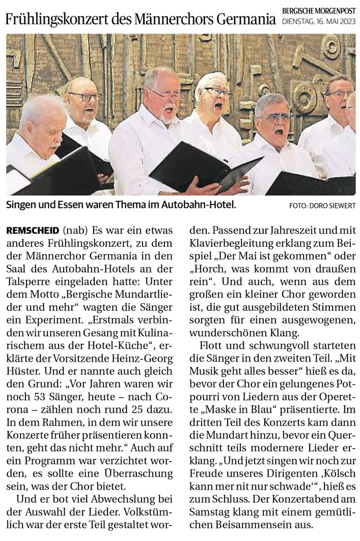 Artikel Bergische Morgenpost v. Dienstag, 16. Mai 2023