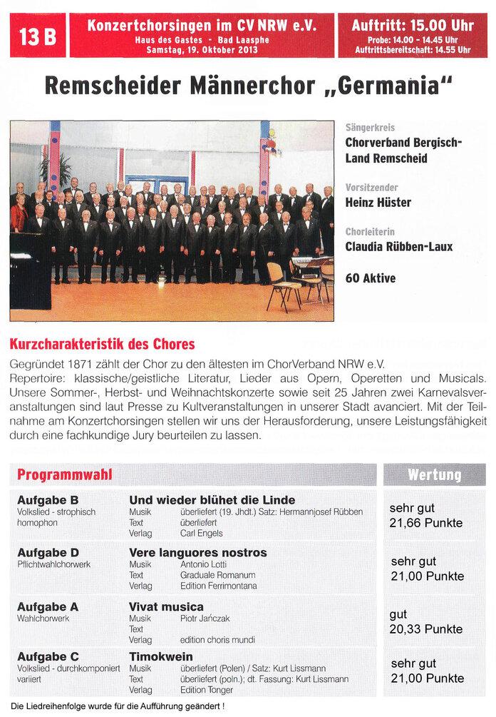 2012_09-08 Unser Chor wurde zur Teilnahme am Festkonzert „150 Jahre Chorverband NRW" in